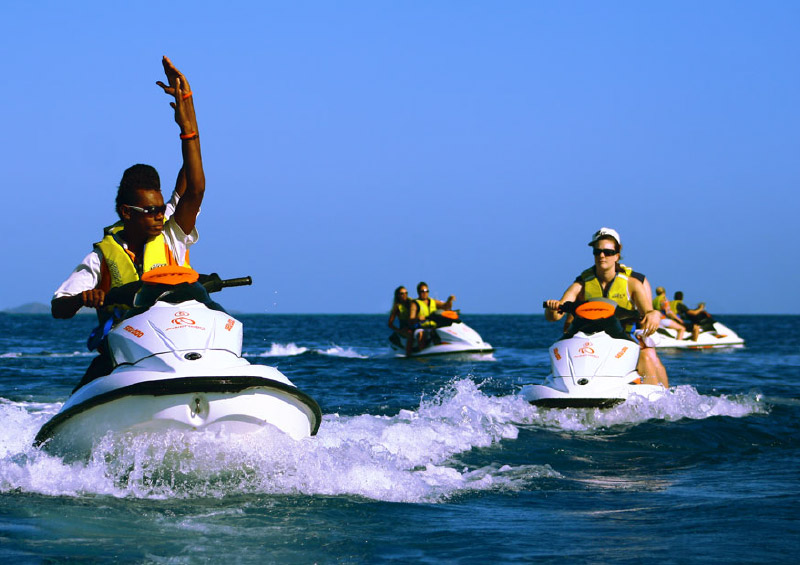 Inolvidable aventura en motos acuáticas Yamaha waverunner VX110 De luxe o Sport visitando la isla Pelícano, Playa Santa Clara, Casa de General Noriega, Hotel Decameron, Pueblito Farallón y Hotel Playa Blanca. Incluimos servicio de guía, chalecos salvavidas e instrucciones de uso. Requerimos tarjeta de crédito como depósito.